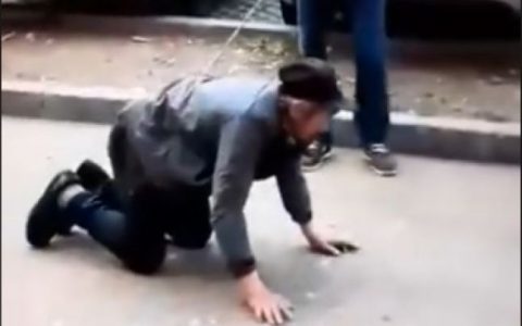VIDEO: Un tânăr a fost filmat în timp ce se plimbă cu un bărbat în lesă, într-un oraş din Gorj