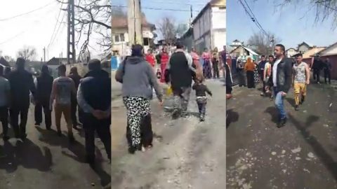 VIDEO: Romii din Balş au ieşit în stradă, în semn de protest: Vrem mâncare, am ajuns să beau suc la un leu