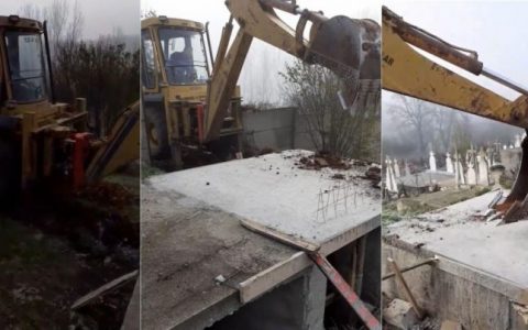 VIDEO – Cavou dărâmat cu excavatorul de preotul satului. „Părinte, lasă-l, părinteeee, că nu mai am bani să-l fac!“